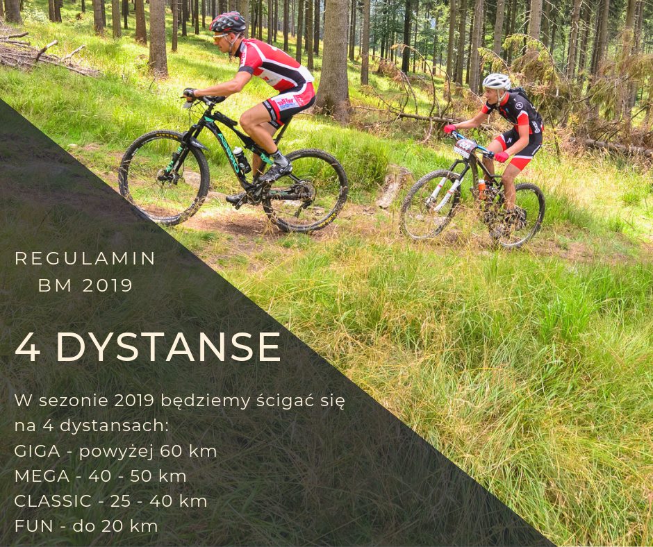Od sezonu 2019 będziemy się więc ścigać na dystansie FUN (będzie miał zawsze ok. 20 km, a czasem nawet mniej i z założenia będzie najkrótszy i najłatwiejszy), na dystansie CLASSIC, którego długość będzie oscylować między 25 a 40 km, na dystansie MEGA (40 – 50 km) i oczywiście na GIGA, który będzie się zaczynał od 60 km, a na przykład w Szklarskiej Porębie sięgnie 100 km.