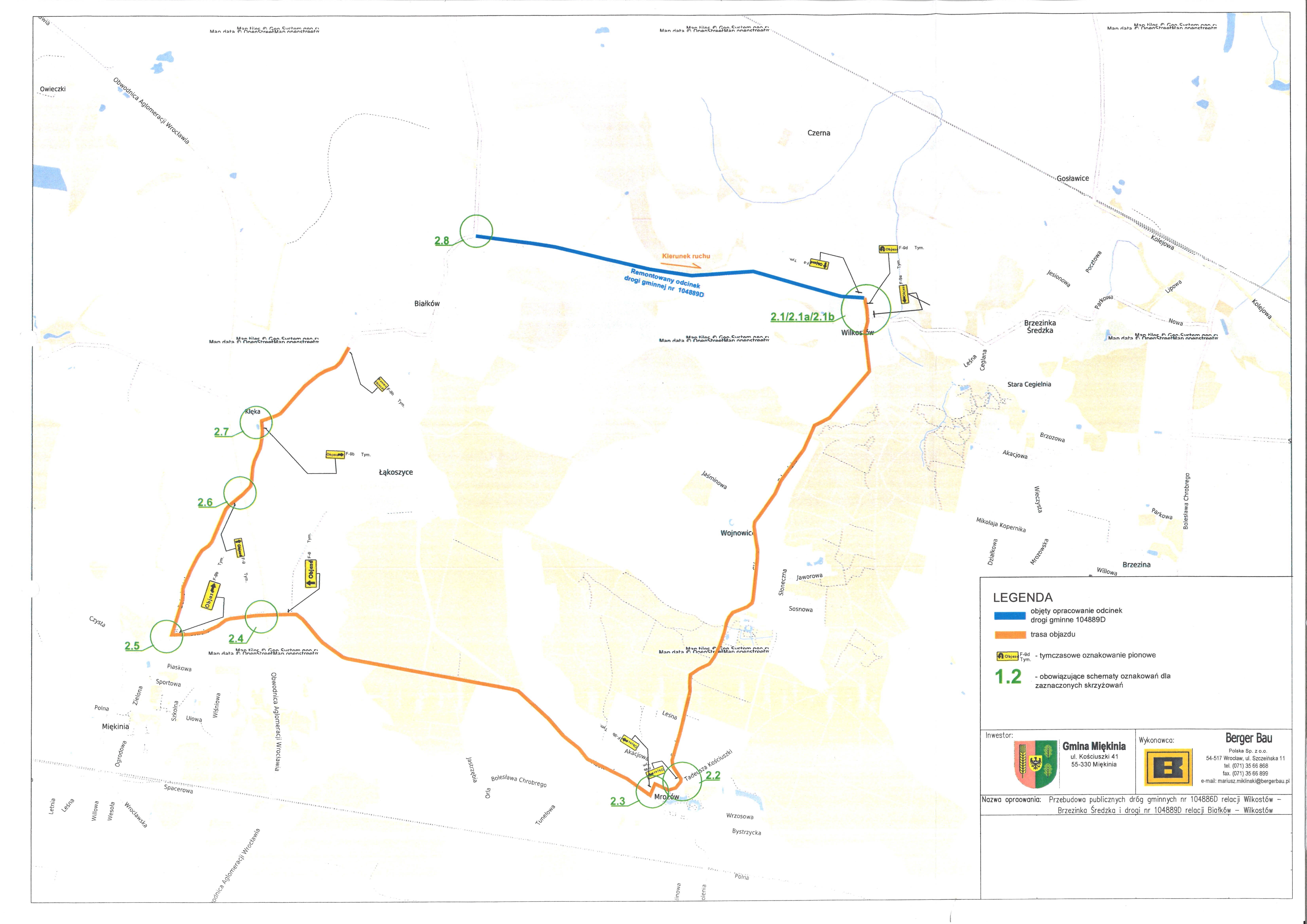Na ww. odcinku zostanie wprowadzony ruch jednokierunkowy od Białkowa w stronę Wilkostowa, natomiast ruch z Wilkostowa do Białkowa zostanie poprowadzony objazdem po drogach powiatowych Wilkostów - Wojnowice - Mrozów - Miękinia - Klęka – Białków.