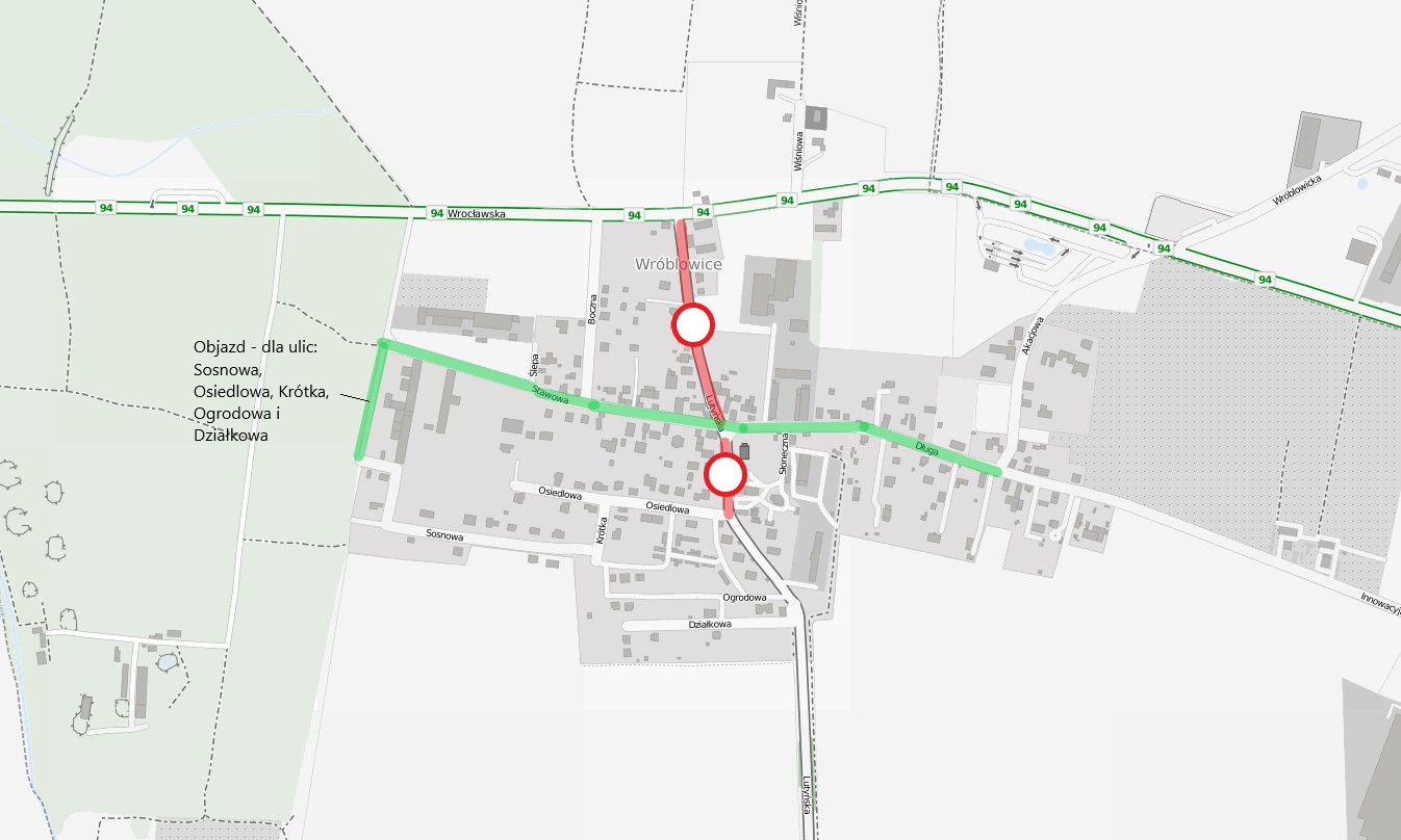 Informujemy, że w dniach od 24 marca do 24 kwietnia br. ulica Lutyńska we Wróblowicach na odcinku od ulicy Osiedlowej do drogi krajowej nr 94 będzie zamknięta z powodu planowanych prac budowlanych. Skrzyżowanie ul. Lutyńskiej z ul. Długą i Stawową pozostanie przejezdne (za wyjątkiem prac bitumicznych – które będą wymagały całkowitego zamknięcia skrzyżowania). Objazd dla ulicy Osiedlowej, Sosnowej, Krótkiej, Ogrodowej i Działkowej odbywać się będzie poprzez dukt leśny łączący ul. Osiedlową z ul. Stawową. Dojazd do nieruchomości przyległych do ul. Lutyńskiej będzie na bieżąco przywracany.