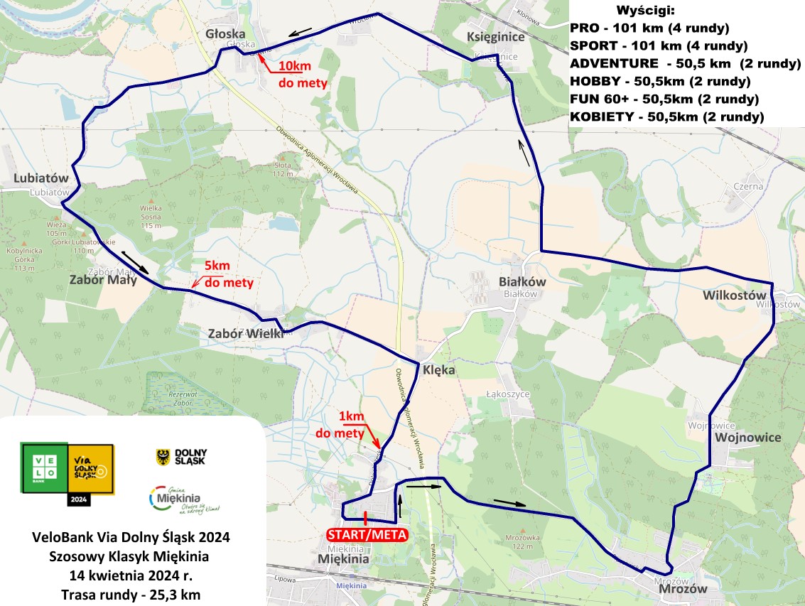 Miękinia - skrzyżowanie DW 341 (nowa obwodnica) z drogą Miękinia – Mrozów - chwilowe utrudnienia w ruchu na czas przekraczania drogi przez zawodników w godz. 12.00 – 16.00