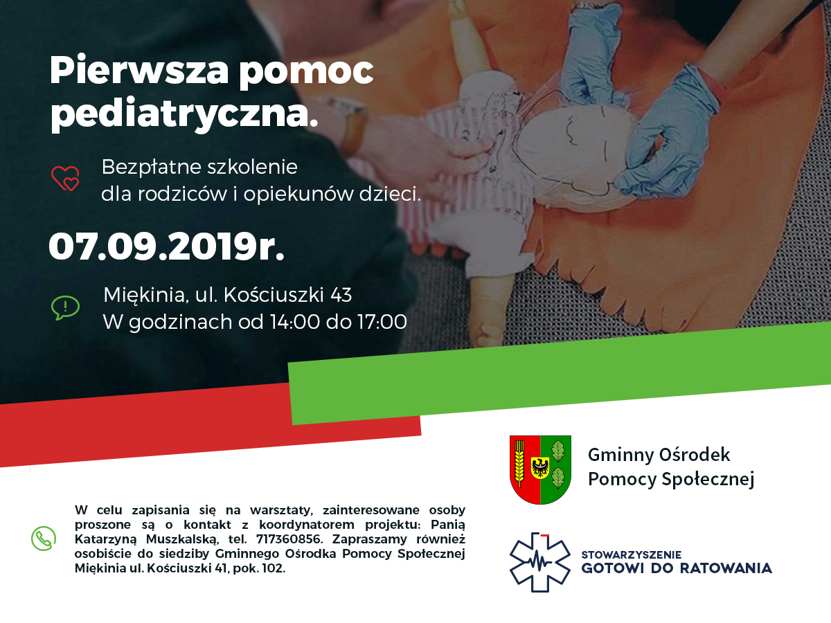 W ramach projektu pn."I TY możesz zostać bohaterem" w dniu 07.09.2019r. w godz. 14.00-17.00 w Samorządowym Ośrodku Kultury w Miękini odbędzie się bezpłatne szkolenie dla rodziców i opiekunów dzieci.